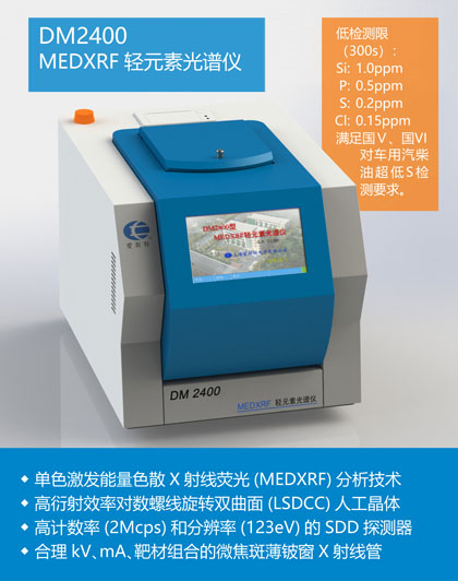 完全依據(jù)ASTM D 7220-12的DM2400S/Cl型MEDXRF微量測硫氯儀采用單色激發(fā)技術(shù),能快速、準確、精確地分析燃料中的超低S。是實驗室和工廠進行燃料中的超低S分析的完美 ...更多